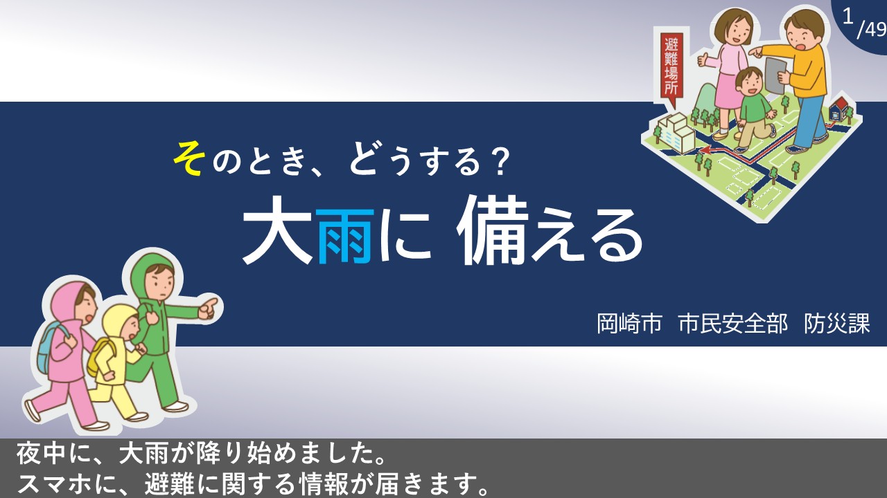 夜中に大雨が降り始め、スマホに避難に関する情報が届いたとき、「今、避難したほうがよいのか」「どこへ行けばよいのか」と迷うことはありませんか。